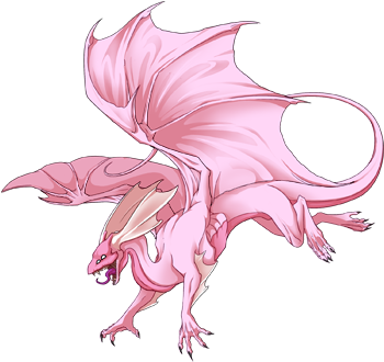 With its delicate pink colouration and its slightly dopey appearance, the pink dragon is utterly unintimidating, and even ancient pink dragons have no frightful presence action. Despite this, they are carnivorous, and while not evil (their alignment is Chaotic Neutral) they will still gobble up happle adventurers if they intrude upon a pink dragon’s lair.