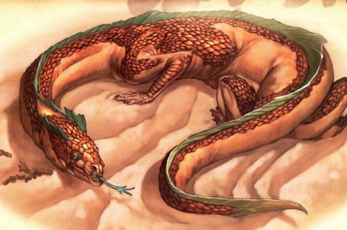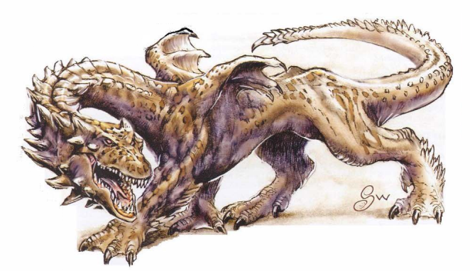 Brown dragons, also known as sand dragons or great desert dragons, first appeared in 2nd edition AD&D, in 1990’s Old Empires. They are wingless but can dig through sand very quickly. Their preferred tactic is to bury themselves in the dust and ambush their prey with a furious assault. They are usually Neutral Evil.