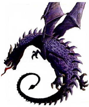 The energy dragon (which, confusingly, is also called a purple dragon) is sadistically evil and perhaps the most intelligent of all dragons, second only to the red dragon in strength and size. They prefer to fly at night, and often find themselves ruling small kingdoms. Like blue and green dragons, they are Lawful Evil.